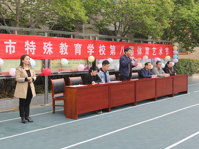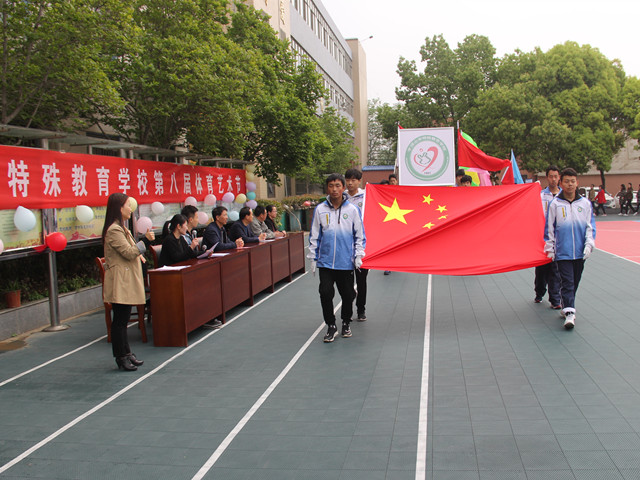 28日上午9点,石校长宣布“平顶山市特殊教育学校第八届体育艺术节”开幕,运动场上随即响起了雄壮的运动员进行曲,运动员入场仪式正式开始。在鲜艳的国旗带领下,校徽队、彩旗队、裁判员队、各班运动员队、教师运动员队,以整齐的步伐,矫健的英姿,依次通过主席台,有序步入会场。入场结束后,举行了庄严的升国旗仪式,在嘹亮的国歌声中,五星红旗在学校运动场上空冉冉升起,高高飘扬。接着,丁校长致开幕词,希望广大师生能在本届体育艺术节上充分展现出团结进取、蓬勃向上的精神风貌,并祝愿全校师生能在本次体育艺术活动中取得成绩、享受快乐!裁判代表和运动员代表郑重宣誓后,本届体育艺术节体育竞赛正式拉开了帷幕。上午进行的是学生组的跳绳、跳远、掷实心球和50米短跑项目,下午进行了学生团体项目比赛。整个赛程中,掌声不断,热情不断,快乐的笑声洒满了校园。