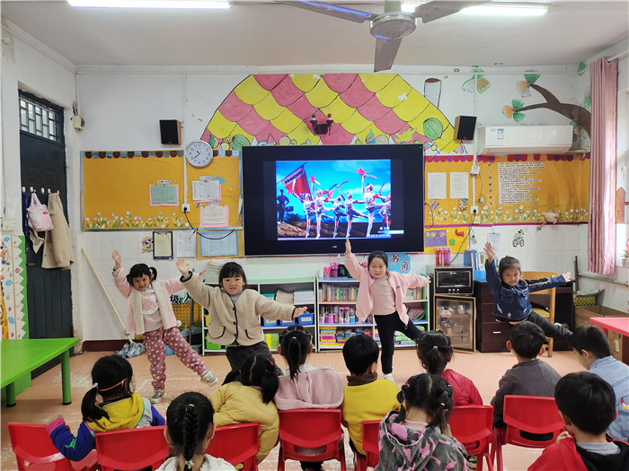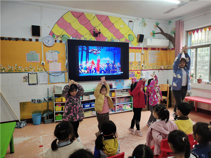 本次活动中,老师们通过视频、图片等丰富多彩的形式,让孩子们欣赏了汉剧《红色娘子军》、黄梅戏《党的女儿》、京剧《在路上》等红色戏曲。欣赏过后孩子们也在老师的带领下模仿和学习戏曲的手、眼、身、法、步,惟妙惟俏的表演不禁让人感叹,祖国红色戏曲的魅力将会永流传。