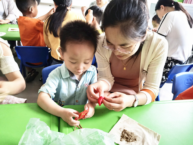 活动中,老师先借助生动形象的课件向孩子们介绍了端午节的来历和爱国诗人屈原的故事,让孩子们了解全国各地的人们在端午节赛龙舟、喝雄黄酒、吃粽子、挂艾草等风俗习惯来感知端午;利用家长资源,让家长和孩子一起制作香囊,系五彩线来走进端午;最后孩子们一起品尝自己的妈妈包的香甜的糯米粽子品味端午。