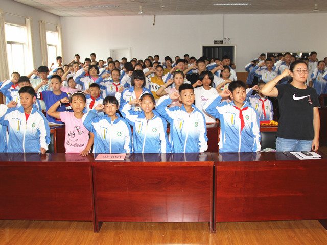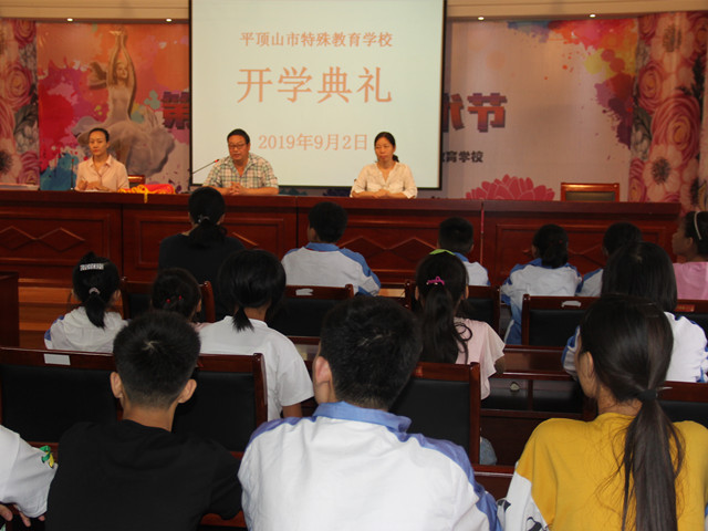 典礼分五步进行:大会开始,首先全体师生起立,庄严的国歌声响起,同学们手语” 唱”国歌并行注目礼。其次,副校长石春山讲话:又到开学的日子了,同学们整整齐齐高兴的返回学校。在假期里,做了力所能及的劳动,又认认真真完成了作业,把安全牢记在心,对同学们表示感谢。我们会在生活中遇到很多问题,学会寻找解决问题的方法。学校安排了节约用电,节约粮食,尊敬老师,感恩父母等活动,我们还要在家长群推广学习手语活动。接下来,为温佳倩等十二名同学隆重发放奖学金,此奖学金是为上学期各年级成绩排名第一的同学发的。并为上学期获得优秀班集体的宋珊珊等四名班主任授旗。最后师生进行新学期宣誓。
