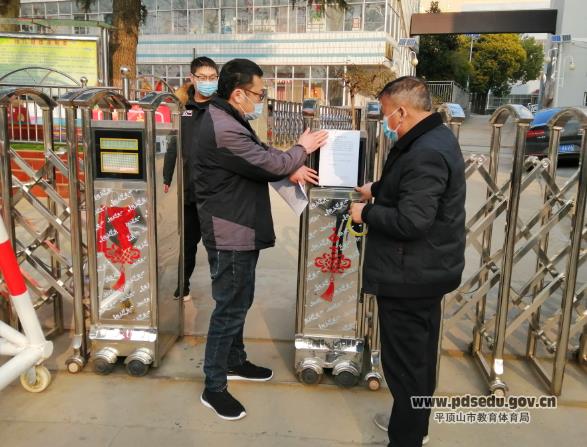 学校多举并措,坚决遏制疫情蔓延势头。一是及时通过微信群、家长群、电子屏等多种渠道,向全体教职工、学生及家长做好疫情防控基本常识和预防知识的宣传教育活动;二是在学校大门口张贴“疫情防控告知书”,严格落实外来人员出入登记;三是引导师生和家长居家或外出时做好防控工作,尽量避免到通风不畅和人流密集场所活动,如有不适,及时就诊;告诫师生不要前往武汉及出现疫情的地区。四是要求班主任加强与学生及家长的联系,了解和掌握学生假期动向,做到精准摸排,准确及时上报信息。发布《平顶山特殊教育学校致全体师生的公开信》,就疫情防控知识对全体师生进行了科学教育,进一步增强了全校师生防控疫情的信心。五是每天及时按照属地管理的原则,制定专人向市教体局报送疫情相关情况,并且按照省厅和市教体局要求及时上报湖北、郑州、信阳、南阳等外地回来师生的相关情况。六是做好校园疫情防控工作,加强校园管理,严格控制外来人员随意进入校园。加强与属地教育部门及卫健部门的联系和沟通,及时发现、报告并配合卫生健康部门有效处置疫情,严格落实疫情防扩散措施;七是学校配备测温枪、酒精、手套、一次性口罩、84消毒液等防控必备物资,培训专人定期对各教室、教学楼、每天对值班室、门卫室、校园、家属楼进行高质量消毒。