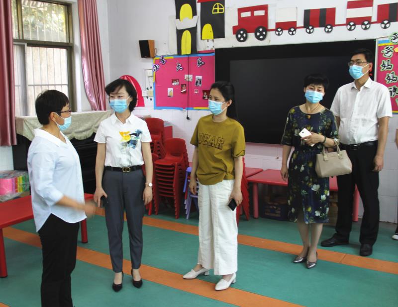 为深入贯彻市教体局关于做好全市幼儿园及特殊教育学校返校复学工作的通知精神,确保幼儿园开学工作安全有序。5月19日上午,市教体局基教科主任科员王娟、市教体局卫生保健站副站长郭卫红一行深入市特殊教育学校,对该校六一幼儿园返校复学工作进行检查验收。校党支部书记、校长王绪顶及校班子成员、幼儿园负责人陪同检查。