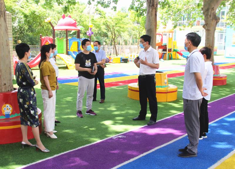 检查组实地查看了幼儿园出入口、教室、食堂等重点场所通风消毒情况,详细询问了幼儿园开学预案、应急防控预案的制定、接送环节的具体安排、晨检制度等情况,对学校六一幼儿园疫情防控和开学准备工作表示肯定,并对一些细节性的问题提出了指导性意见。