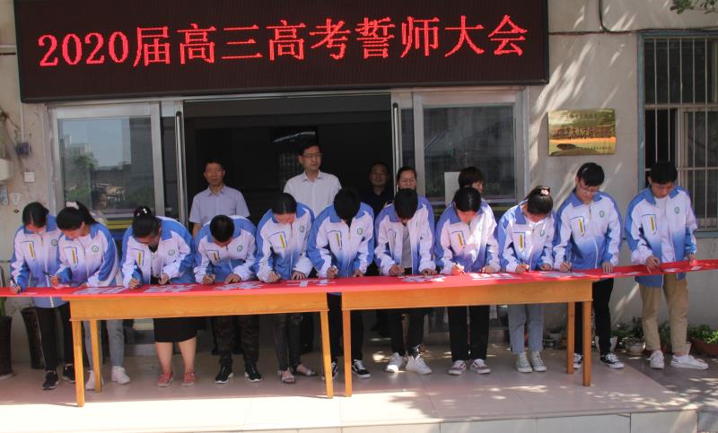 接着,高三年级班主任樊彬彬作报告;学生代表叶依恒发言。接下来全体高三学子举起右手面向国旗庄严宣誓:不做怯懦的退缩;不做无益的彷徨;不负父母的期盼;不负恩师的厚望;我们将凝聚全部力量,让梦想在六月——闪光!最后,高三学子在红色的横幅上签下了自己的大名,表明了自己决战高考的勇气和决心。他们会用微笑照亮前程,用汗水浇筑理想,用斗志冲破一切难关,会开辟出一片独属于自己的天空!