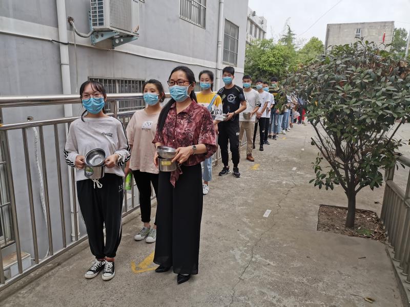 学校膳食处早早做好开学准备工作,一人一餐桌、对照名字、朝着同一方向就坐,一二三四年级第一批就餐,五六七八第二批就餐,九年级和高中同学第三批就餐,孩子们秩序井然。