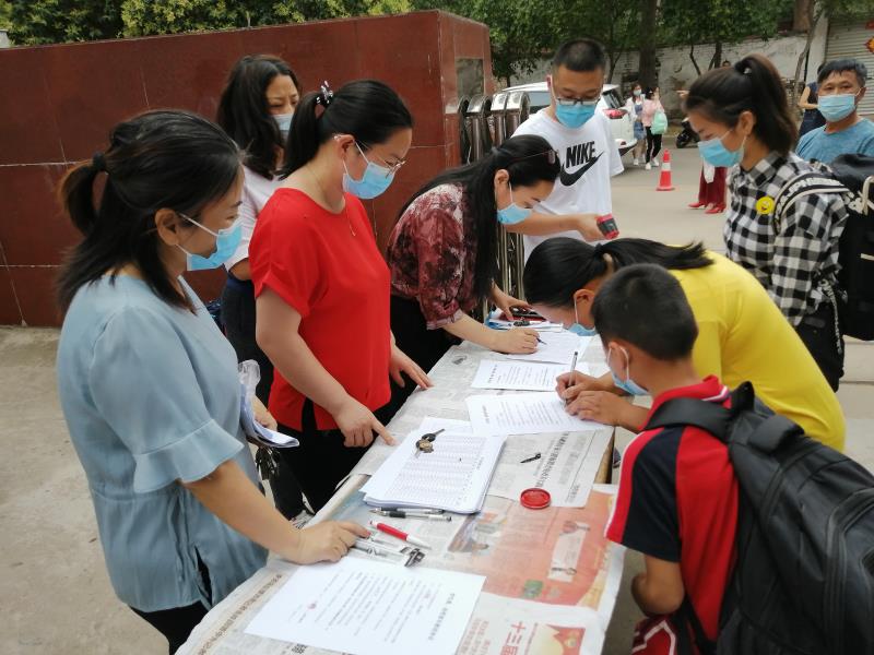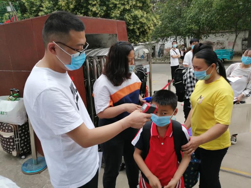 下午三点,学生们拿着行李排队依次通过测温道、接受体温测试合格后、对手和行李消毒、家长签定接送协议后,学生进入学校。此时的他们,心里定会暖暖的!新学期第一节课各班在教室进行《新型冠状病毒预防知识》学习。下课了,同学们一改往日"一窝蜂"的习惯,现在每人始终保持一米的安全距离,井然有序地入厕。然后认真按照七步洗手法勤洗手,让病毒远离自己。课堂上,孩子们认真、专注的听课,此时的他们更明白校园的幸福来之不易!
