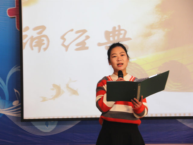 在第二期道德讲堂主持人雷伟、何克珍的引导下,全体教师右手轻抚胸口,轻闭双眼,在舒缓的乐曲声中,静静反省近期的行为。这种独特的方式开启了我校第二期道德讲堂的序幕。