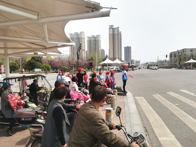 3月26日上午,在我校领导的部署下,校团委组织我校优秀团员到开源路与黄河路交叉口开展“文明交通岗,志愿我先行”志愿服务活动。