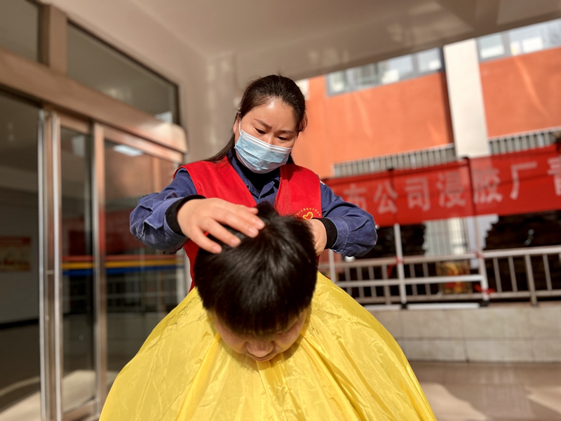 2月21日下午2:30,天气晴朗,阳光明媚,帘子布公司浸胶厂青年志愿服务队陈建勋、张文杰等一行十多人来市特教学校为残疾孩子义务理发。学校提前通知班主任告诉本班需要理发的学生中午把头发洗干净,下午从一年级开始按班级进行,各班主任卡着时间带领本班学生排队。在康复…