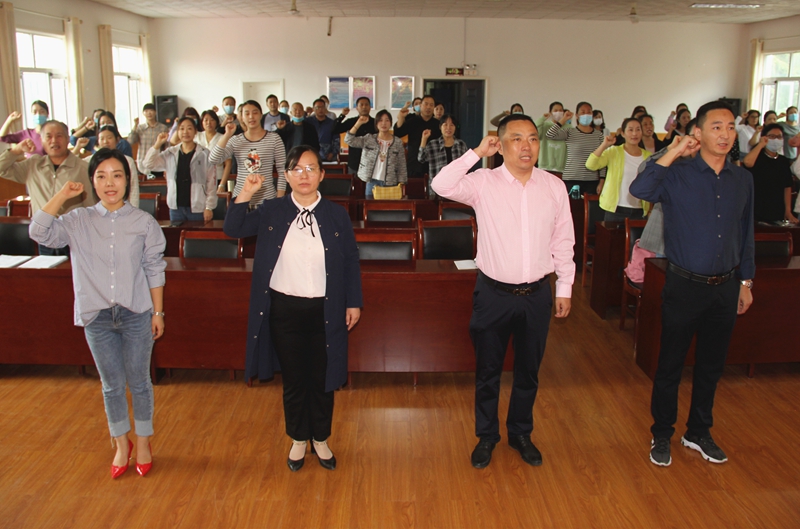 8月29日,市特教学校全体教师在博雅楼大会议室举行了新学年教师誓词宣誓仪式。新上任的校长杨卫华站在前排带头宣誓。副校长侯凤娟领誓。博雅楼大会议室的大屏幕上,《平顶山市教师誓词》全文格外醒目,全体教职工面向大屏幕肃立,一起举起右拳,开始宣誓。副校长侯凤娟庄…
