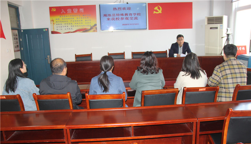 11月12日上午,渑池县特殊教育学校校长杜晓英、副校长李水霞一行六人到我校参观交流学习。在会议室,校长王绪顶首先对杜校长一行表示热烈的欢迎,随后王绪顶从学校的教育理念、办学思想、办学特色、取得的成就以及未来发展规划做了详细介绍。杜晓英一行进入教室,随堂对该…