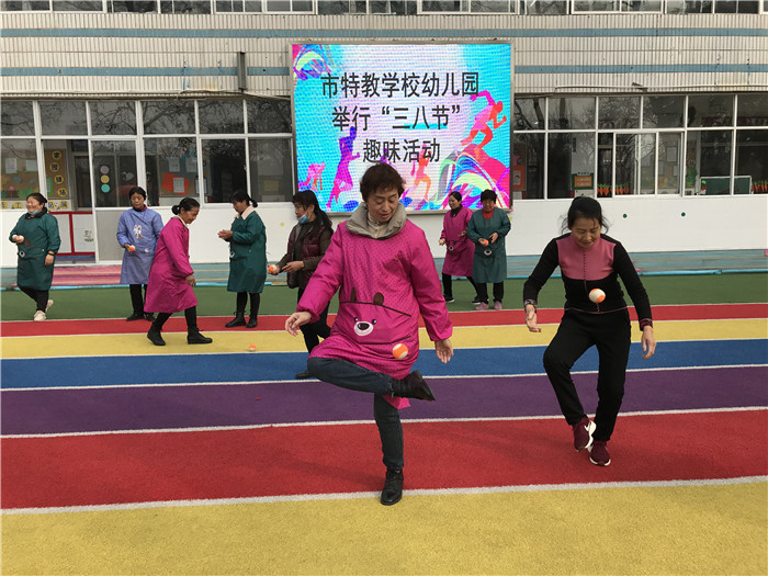 阳春三月,暖意融融,绿上枝头,生机勃发。在这春意盎然的季节里,我们又迎来了一年一度的“国际三八妇女节”。为了活跃幼儿园全体教职员工的课余文化生活,展现女教职员工的精神风貌,市特教学校幼儿园于3月5日上午举行“庆三八节”教师趣味运动会活动。